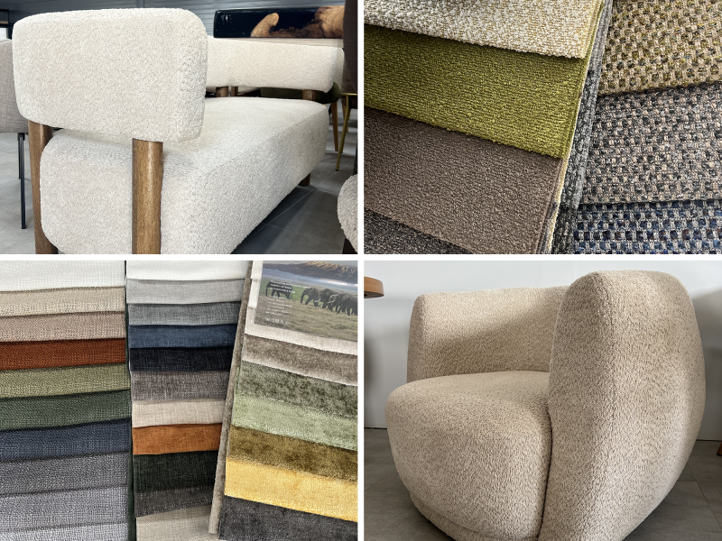 | Букле | Петельчатое плетение, объёмная текстура, визуальная «мягкость» | Диваны в лобби, лаунж-кресла, декоративные панели |