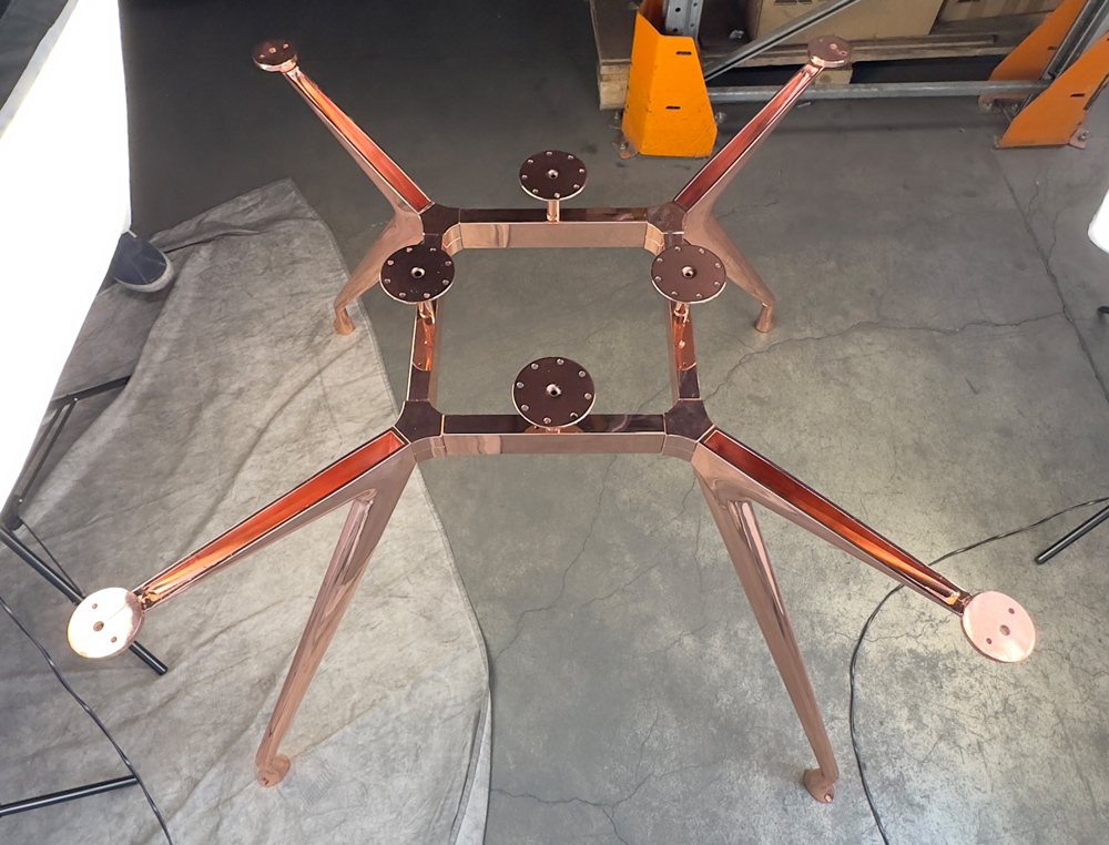 Прочная алюминиевая конструкция с диаметром верхней части 110 см и нижней 130 см обеспечивает надежную поддержку столешниц Ø200 см. Устойчивое основание выдерживает интенсивные нагрузки, сохраняя идеальный внешний вид даже при ежедневном использовании.