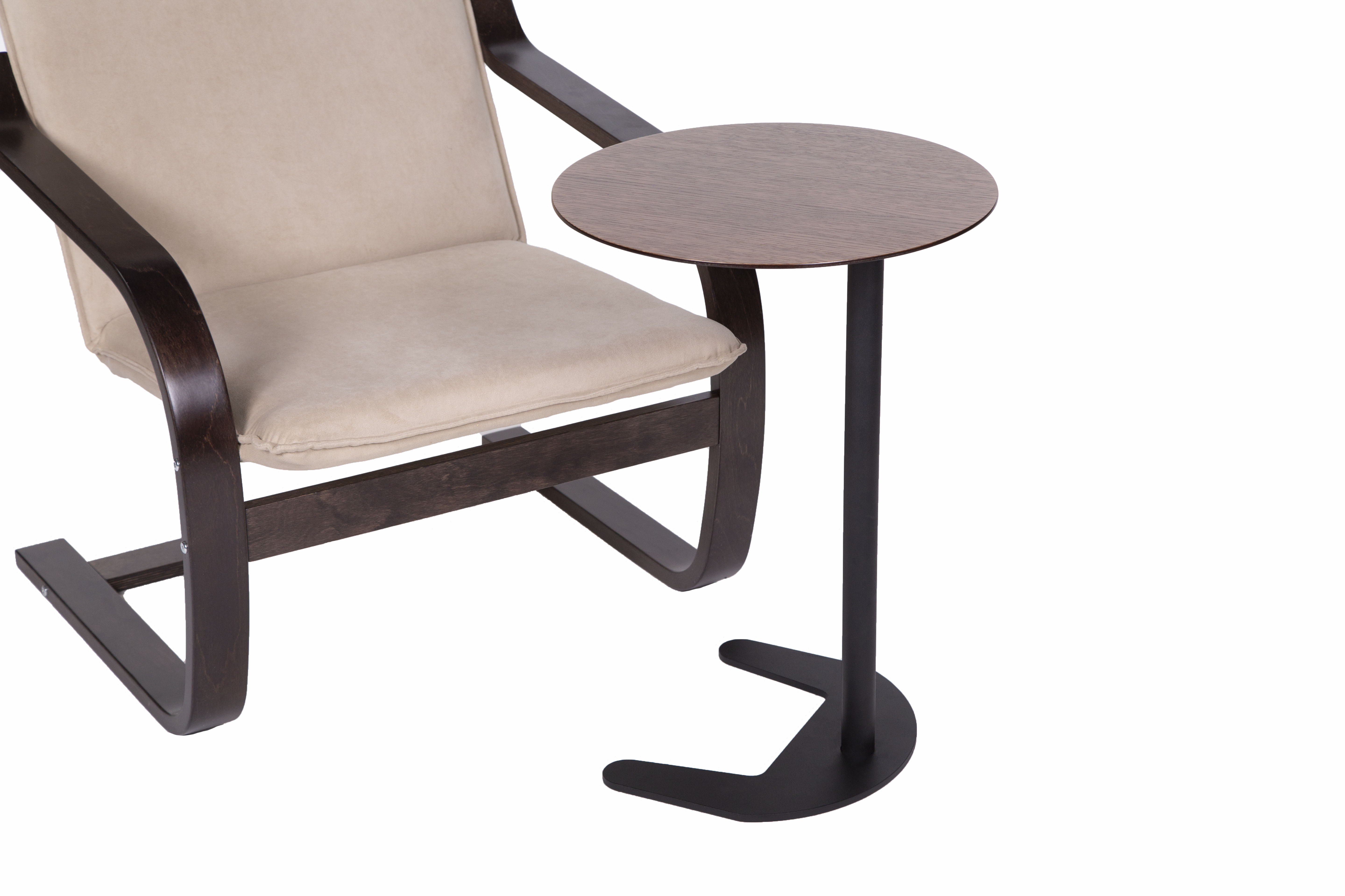 Круглая столешница обеспечивает удобное размещение ноутбука или кофейной чашки, а устойчивая конструкция гарантирует безопасность использования. Легкий вес позволяет гостям свободно перемещать столик по номеру, создавая комфортную зону для работы или отдыха.